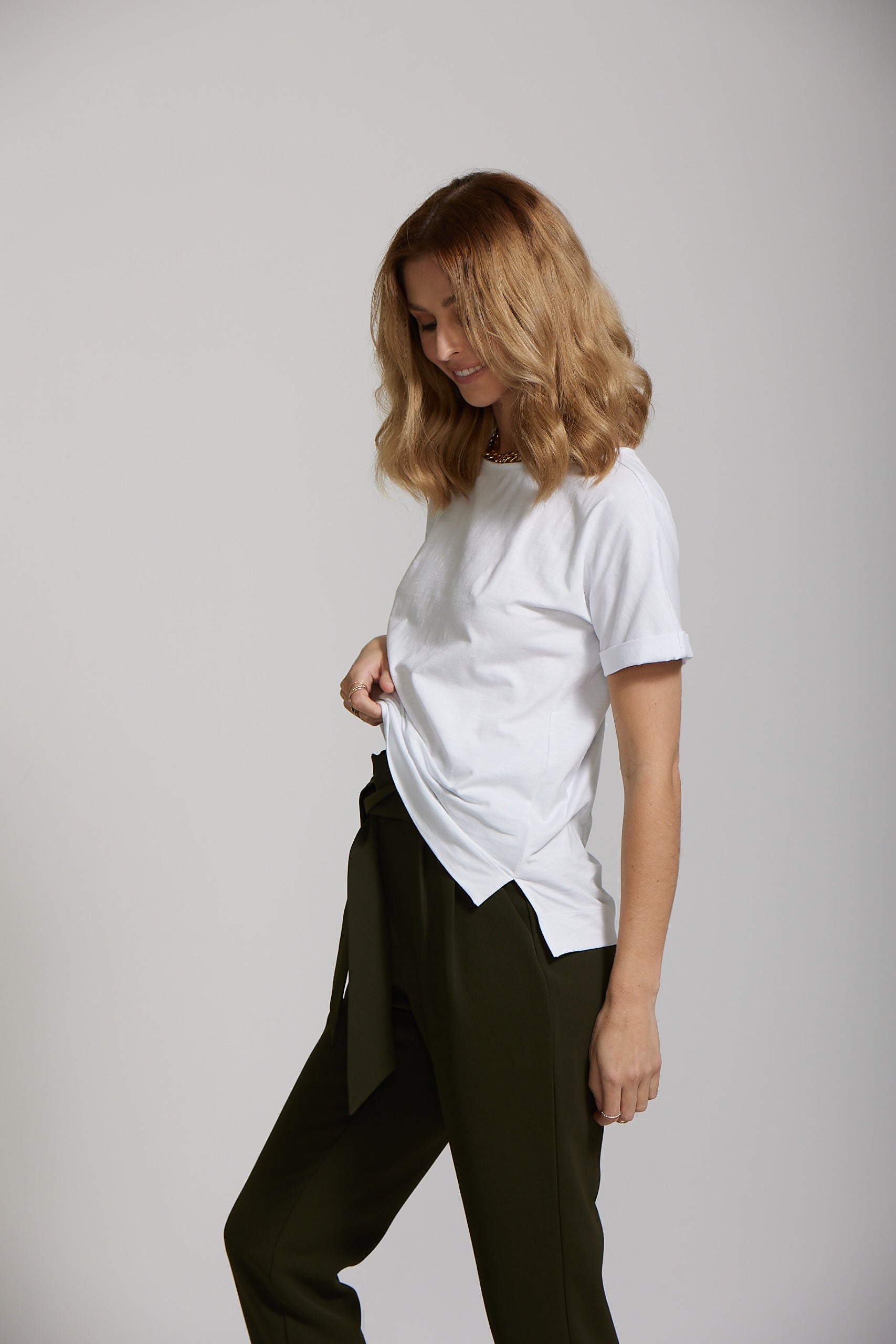 Our Basic Tee has a longline back, rolled-up sleeves detail and is made in a super comfy fabric.