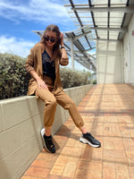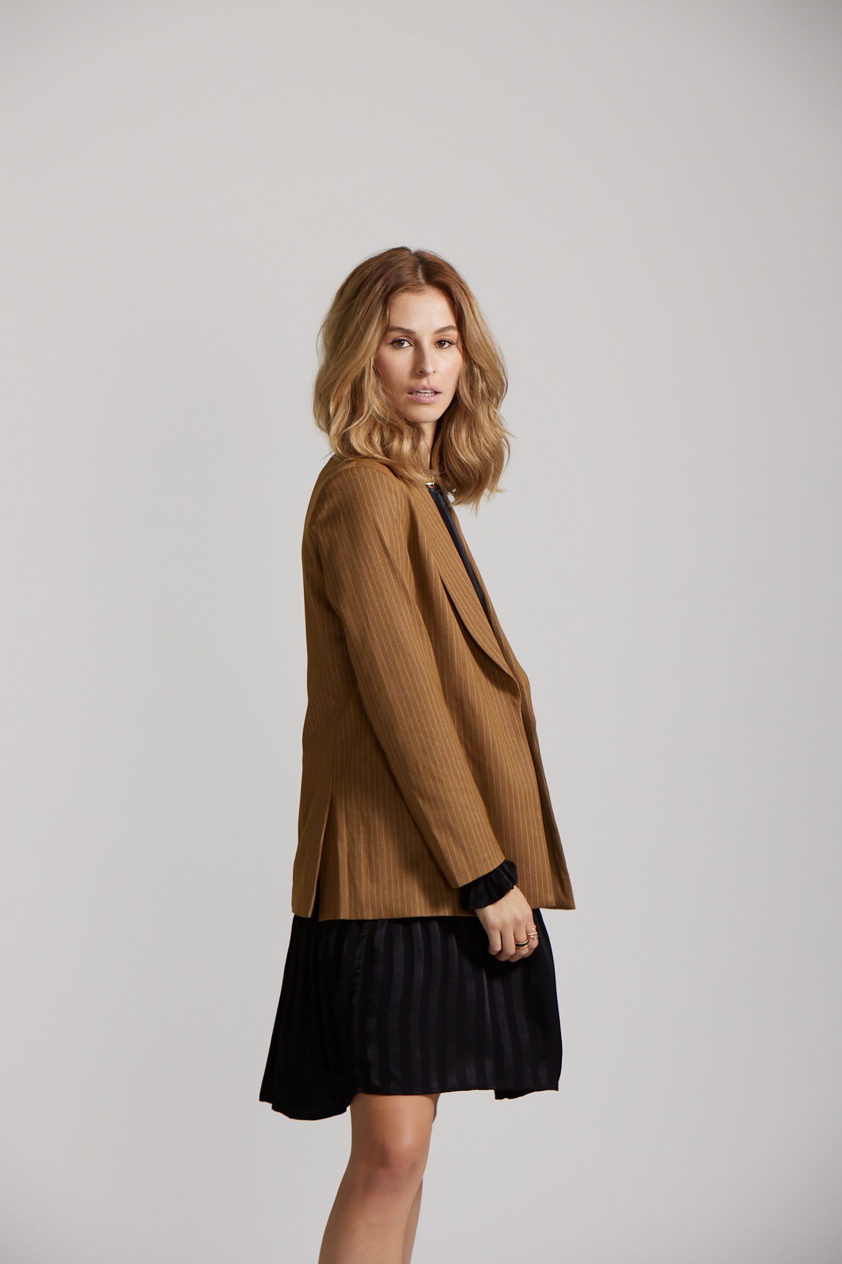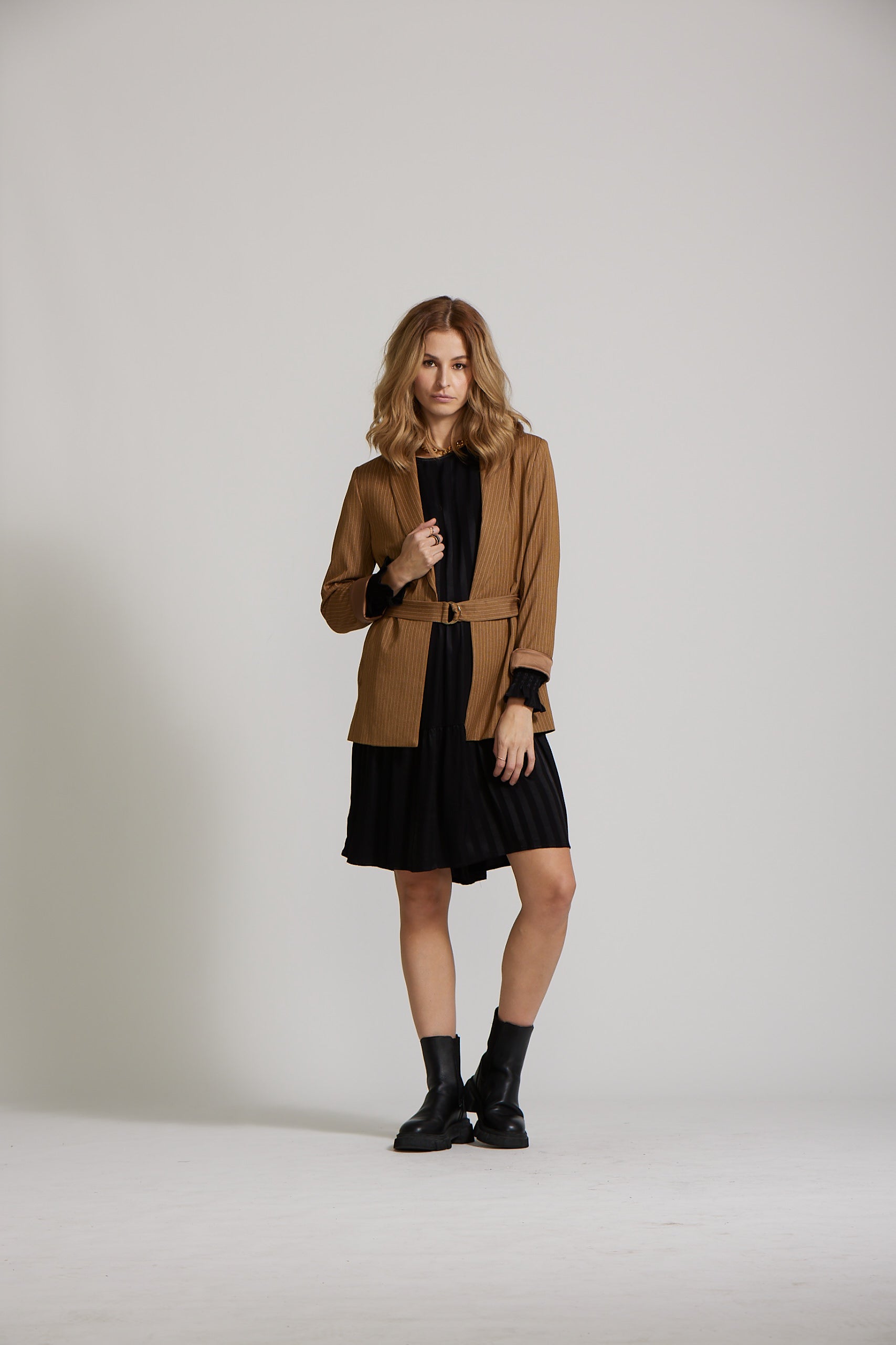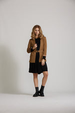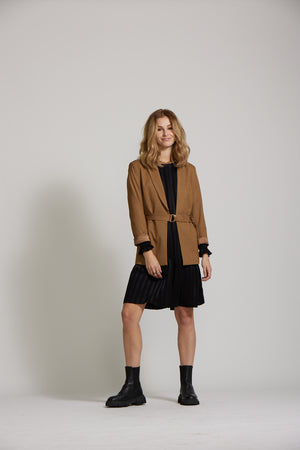 Our longer length Blazer has a beautiful tailored but relaxed fit. It has a chic detachable belt, that you can style as you please.