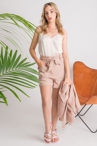 This style also looks funky when worn dressed up as a matching set paired with our Ruffle Camis or Cami Tops, our Linen Blazer in Blush, a cool clutch and heels - you can't go wrong with it!